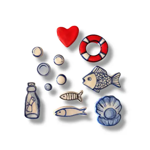 Ceramic elements – The elements can be glued with a special adhesive for gluing ceramics to tiles or walls. The adhesion should be secured for the first hour or even longer – depending on the size of the object – with masking tape.